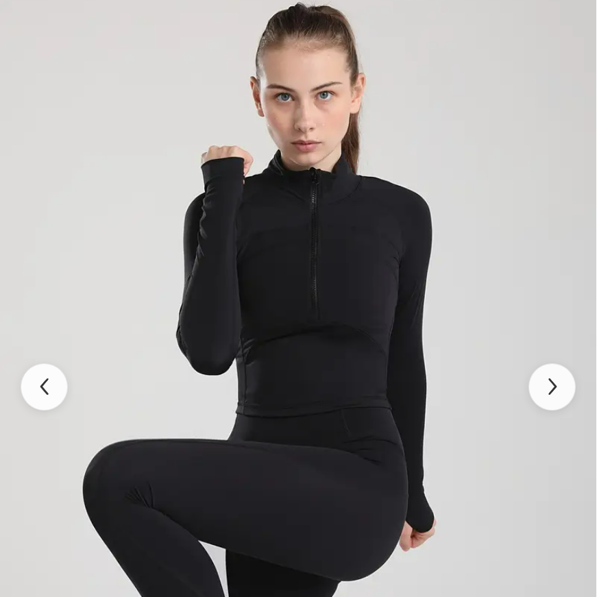 1/2 zip pullovers workout yoga jacket, long sleeves with thumb hole to protect your palms.